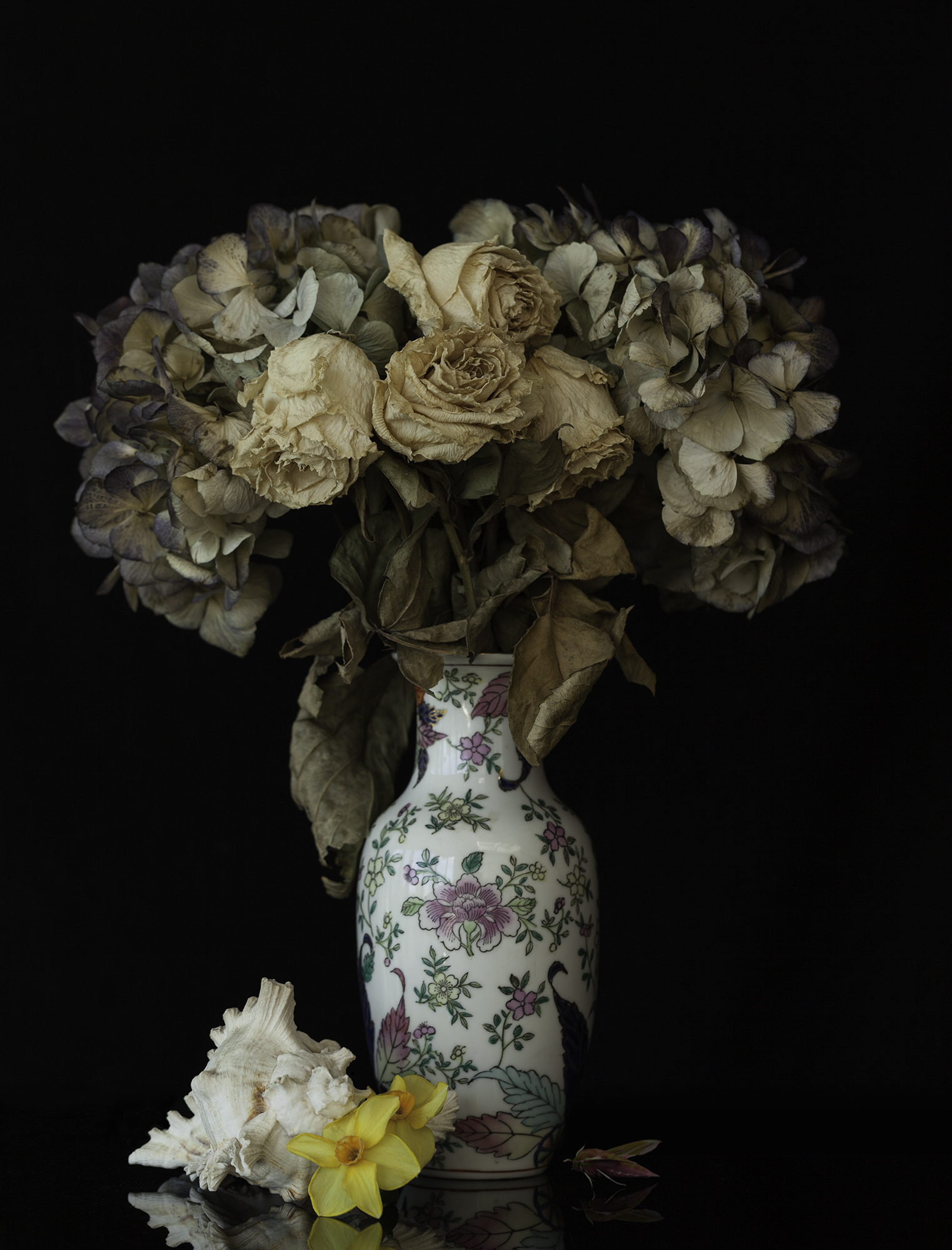 Shelley Nott's still life photographs are instantly recognisable reflecting her interpretation of the tradition genre but created for 21st century walls. She is totally absorbed in the world of slow photography with each photograph, using only window light, taking many hours (or even days) to create. She feels by using natural light she is getting closer to the Dutch Masters of the 17th and 18th century with the added advantage of photographs that have a depth and colour that draw you in. But these are more than just photographs, each one tells a story making the viewer look and look again to see the full meaning. Collectors of her work span the globe often mixing her photographs with still life paintings.