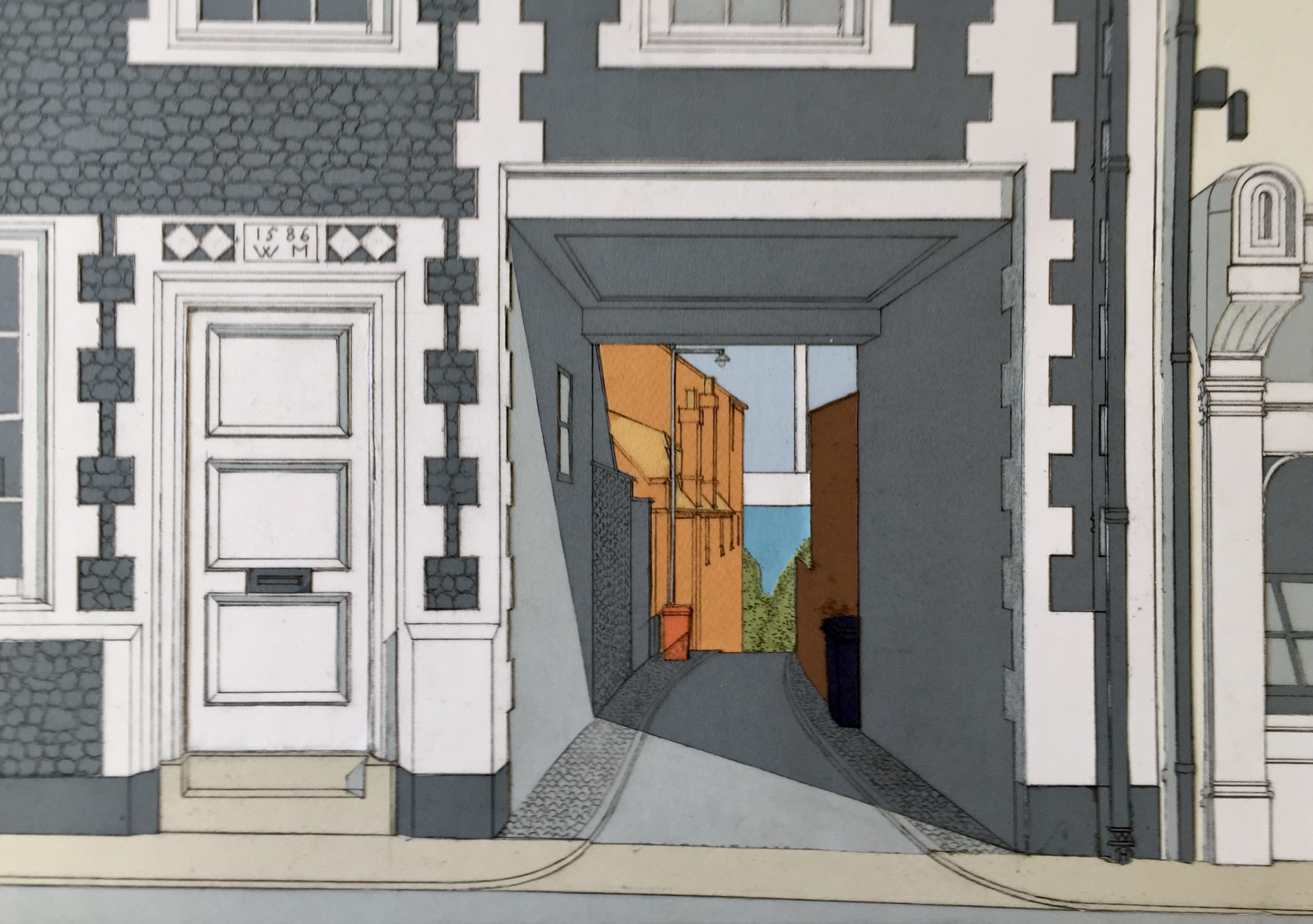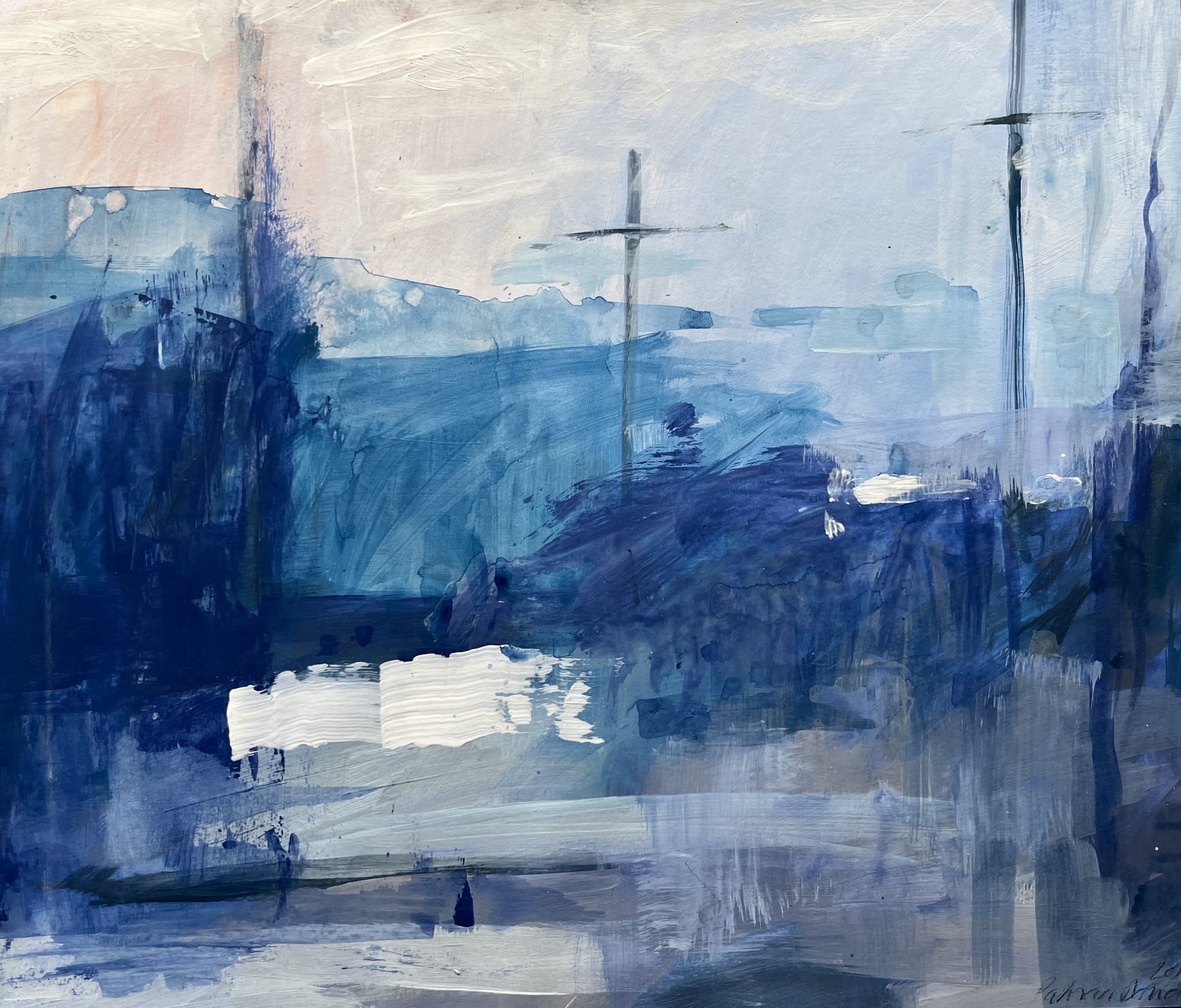 I mostly sketch and paint outside reacting to what lies ahead of me using acrylic paint and inks then back to the studio to develop the work into larger pieces