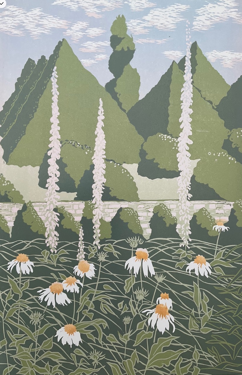 Always having been involved with art, the acquisition of an Albion printing press some years ago initiated a change of direction for the expression of Anne’s creativity, through carving and printing lino block.