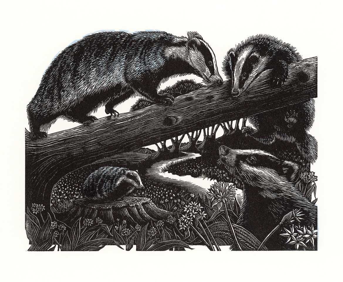 Julie produces lino prints and engravings that are usually inspired by the natural world around her, and she attempts to convey the movement in nature when she designs her work, as well as a sense of depth. Julie has recently been making prints of various birds and animals using their collective noun as a theme.