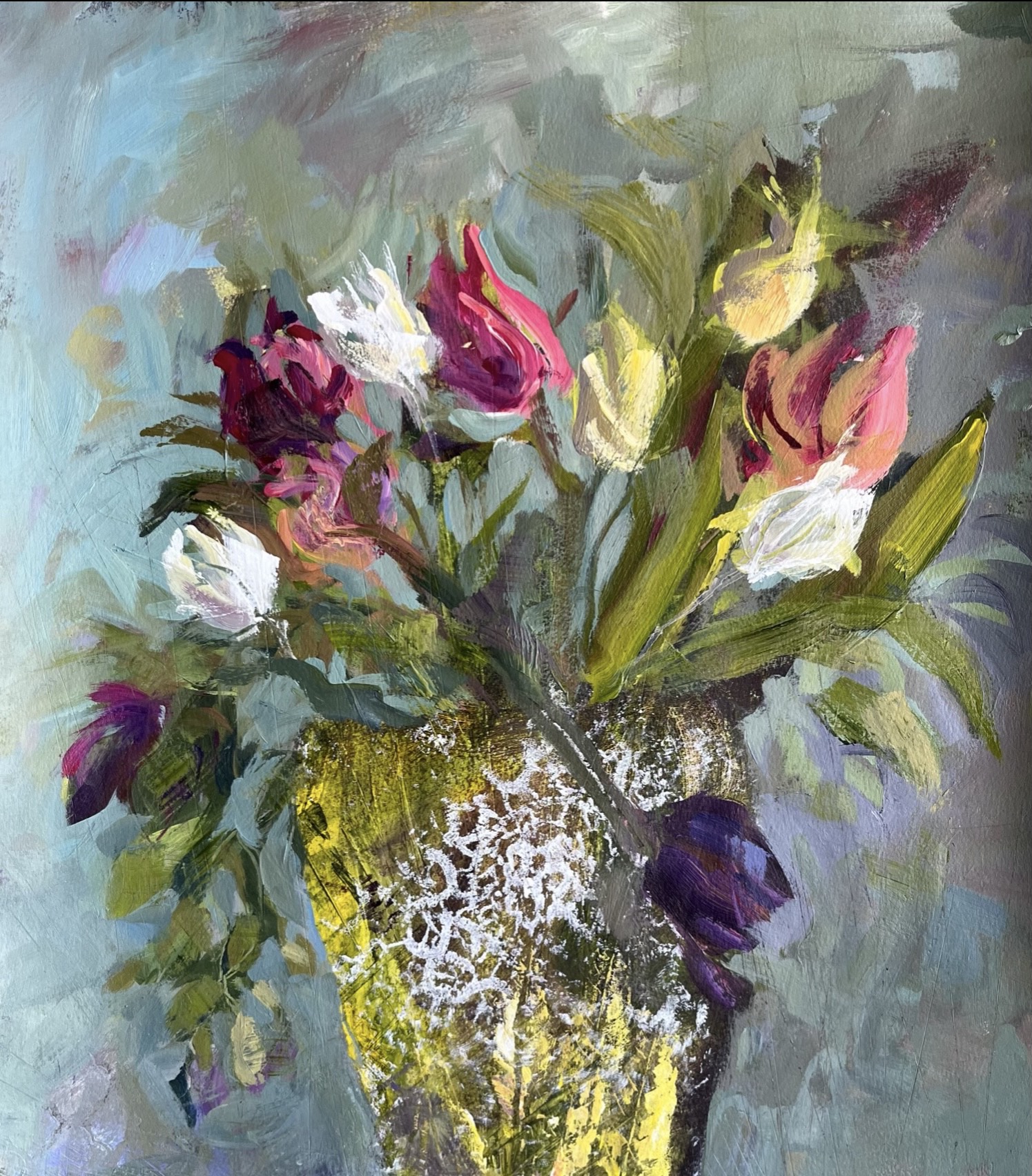 I now indulge my love of nature, particularly flowers, and paint them constantly. Painting from life provides endless inspiration and challenges. It’s all about colour, it’s all about light.